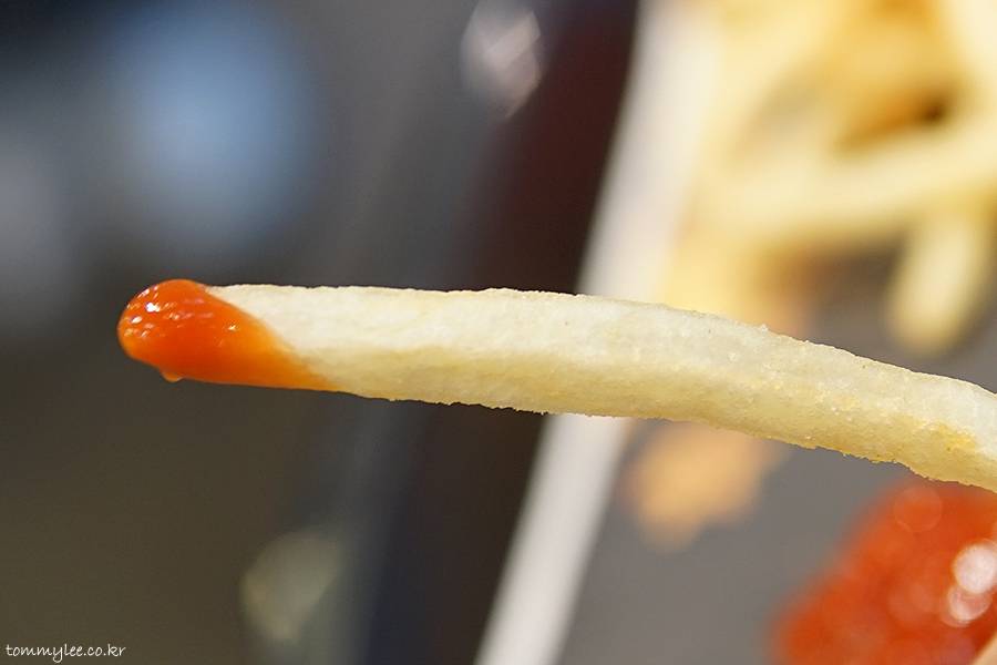 뽀얗게 잘 튀겨진 맥후라이.. 케찹을 찍어서 냠냠..