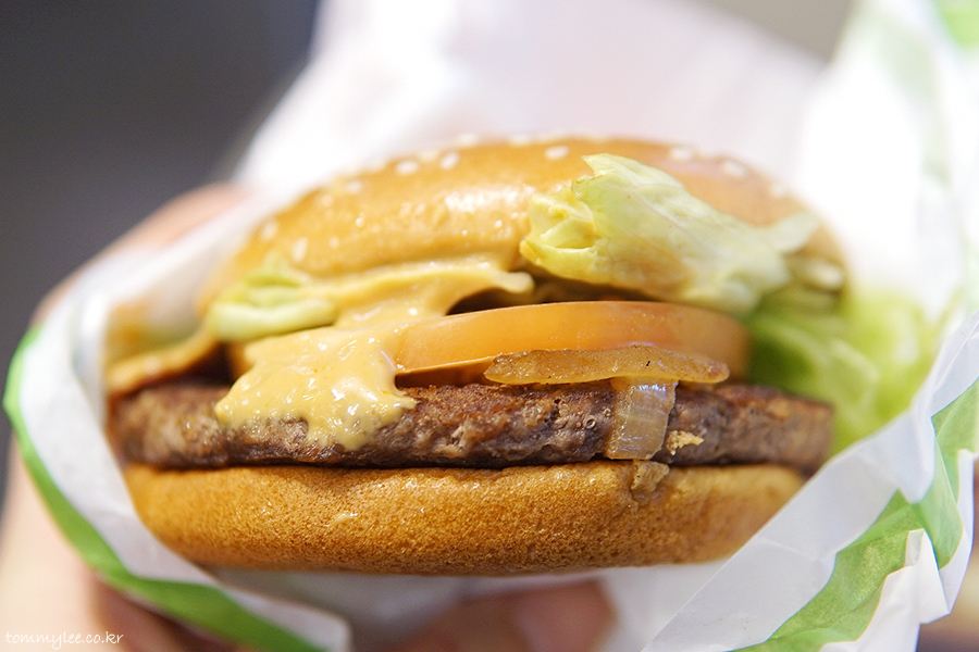 쿼터파운더 패티를 사용하고 있어서 볼륨감 있고 이것저것 들어가는게 많아서 탄탄한 구성감도 느껴짐.. 지인분의 악평을 듣고 난 후에 먹어서 그런지 먹을만 한데?? 하는 생각이..