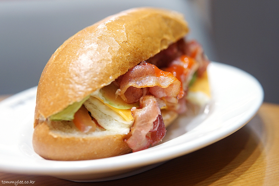 메뉴판 이미지 사진과 거의 똑같이 나옴.. 워낙 내용물이 빵빵하다 보니 베이컨이 일부 탈출 시도 중이네요.. ㅋㅋㅋ..