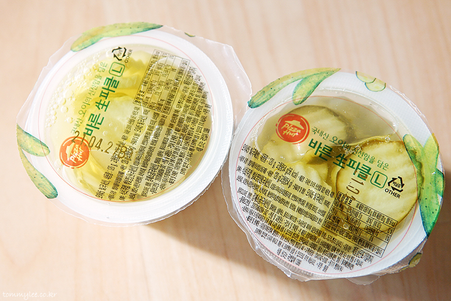 피자헛.. 바른 생피클.. 피자가 2판이라 피클도 2개..