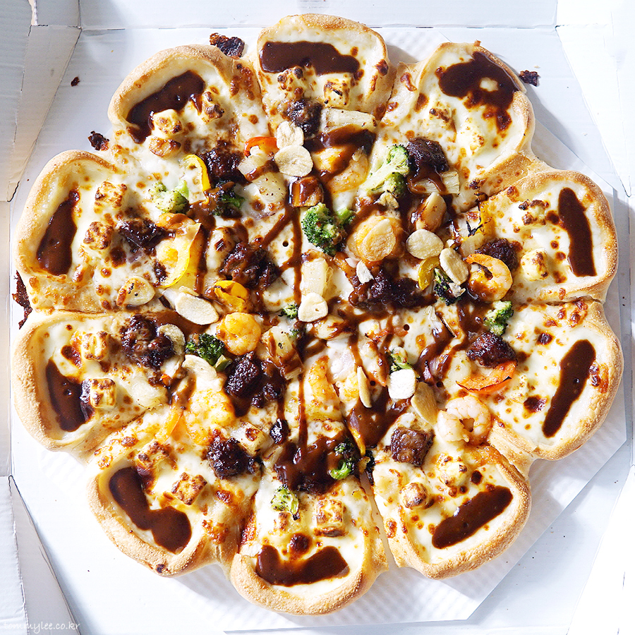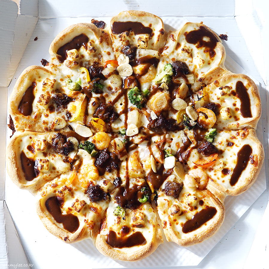 약점이 거의 보이지 않는 피자입니다.. 화려한만큼 맛있음.. 주문하실 때는 천원 추가해 블랙알리오 엣지로 하셔야 꽃모양 에지가 된다는 거 주의하셔야 하겠습니다..