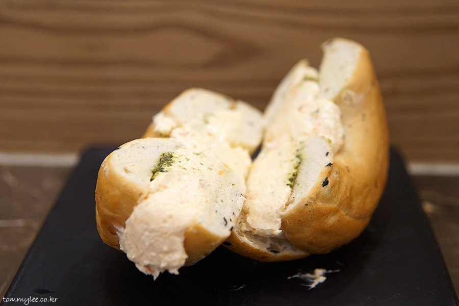 포테이토 베이글인데 의외로 올리브가 들어가 있네요.. 블랙올리브가 많이 미약한 양이긴 한데 향은 또 강해요.. 바질이랑도 잘 어울리고 나쁘지 않음..