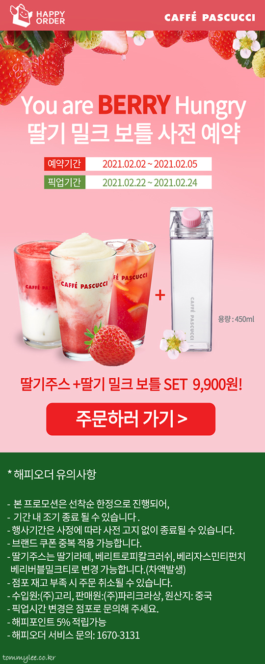 YOU ARE BERRY HUNGRY.. CAFFE PASCUCCI STRAWBERRY MILK BOTTLE.. 딸기주스 + 딸기밀크보틀 세트 = 9,900원.. 딸기주스 가격이 6,500원이니까 보틀 가격은 3,400원인 셈.. 작년보다 500원 오른 건가.. ㅡㅡa..