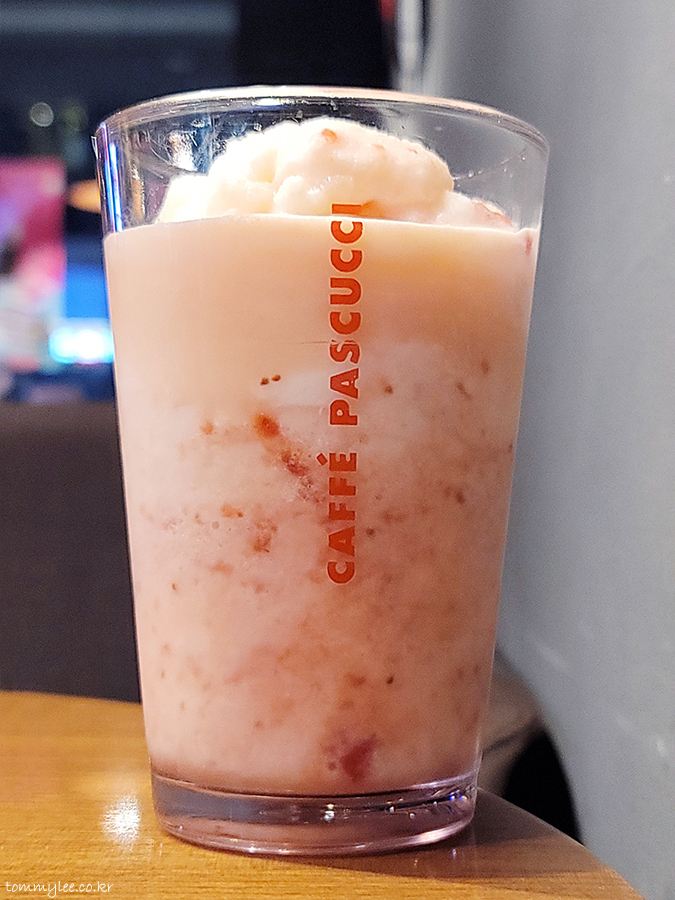 파인애플, 코코넛, 복숭아의 트로피칼 믹스가 들어가는데.. 딸기향이 밀리는 기분이 들더군요.. 주객전도라고 보시면 댐.. 암튼 별로인 걸로.. 파스쿠찌 딸기음료 중에선 역시 자스민티 펀치가 원탑인 듯..