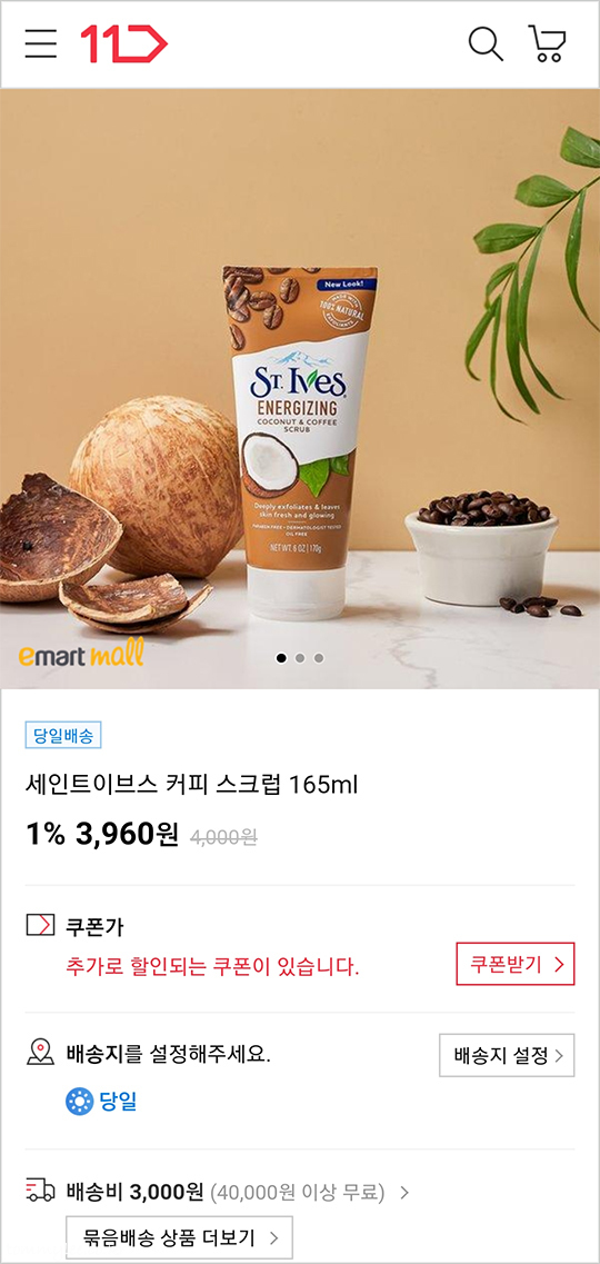 바세린 사다가 발견하고 바로 질렀는데.. 요거이 유니레버 제품인만큼 엄청 저렴합니다.. 이 가격이라니 믿기지 않는.. 미쿡보다 싼 거 아니냐며 막.. ㅋㅋㅋ.. 그냥 사는 게 남는 거.. 11번가 세인트이브스 커피 스크럽 165ml 구입은 → 요기로..