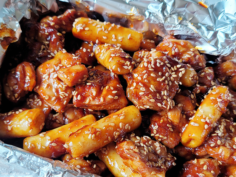 주문할 때 보니까 떡사리 추가가 필수(?)인 거 같더라고요.. 그래서 눈치껏(?) 떡사리 추가.. 근데 추가하길 잘한 거 같네요.. 숯불 치킨이라 그런지 치킨 양이 별로 안 많더라고요.. 떡사리 없었음 진짜 초라할 뻔.. ㅋㅋㅋ..