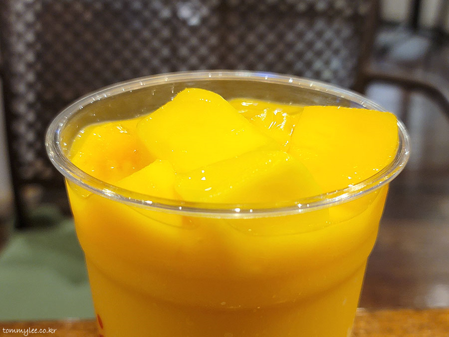 리얼 망고가 들어가는데 나름 가격도 합리적인 편이고 나쁘지 않다는 생각.. 애플망고 코코넛 라떼보단 하나가득 애플망고 스무디네요..