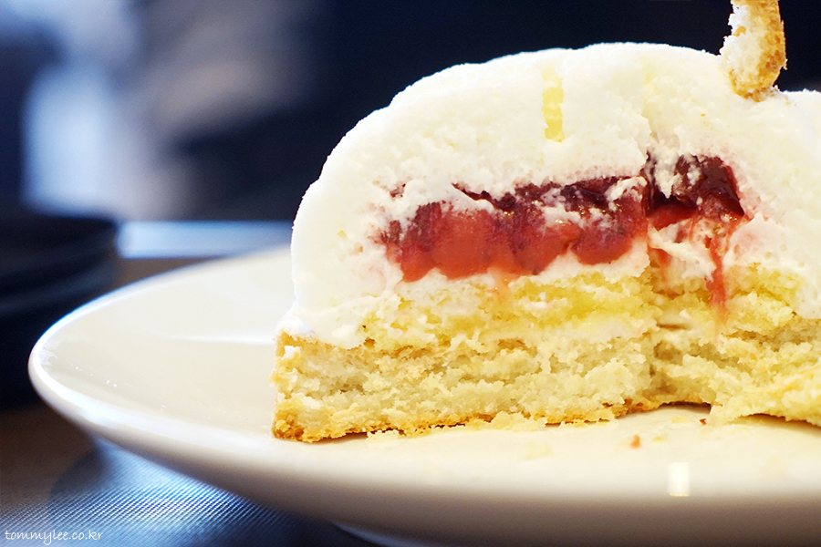 생각했던 것과는 전혀 다른 맛이네요.. 전 이글루 아래 깔려 있는게 타르트 생지인 줄 알았는데 다쿠아즈.. 라이트하고 폭신한 크림치즈 안은 딸기 콤포트 필링이 들어 있음..