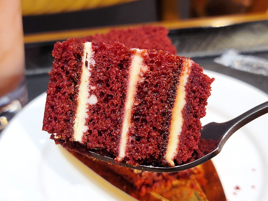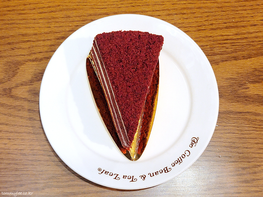 오랜만에 만나서 반가운 기분에 주문한 레드벨벳 케이크.. 위에서 바라보면 이런 느낌..