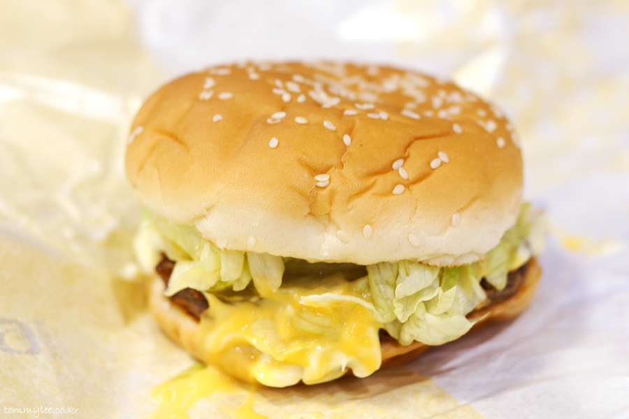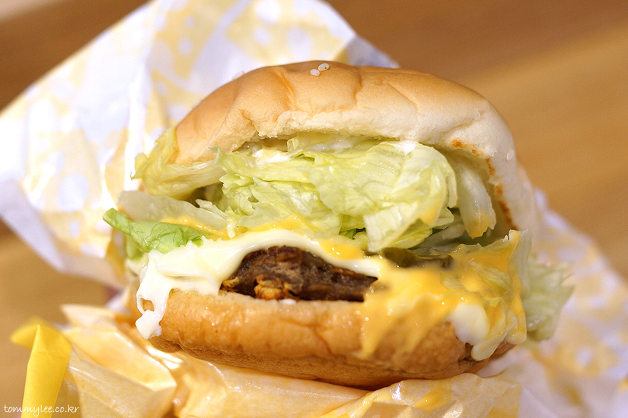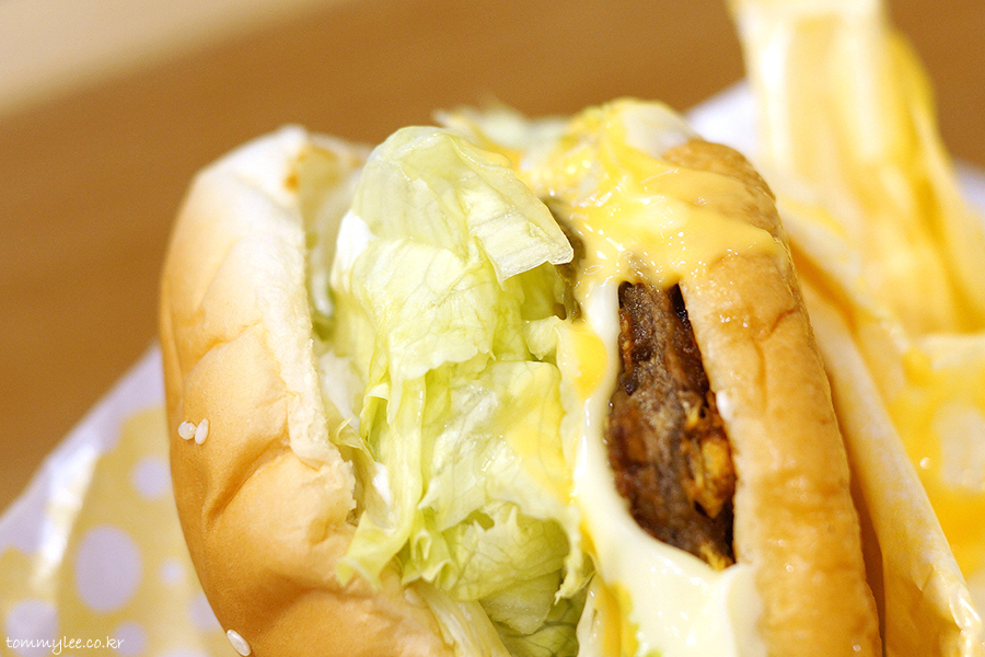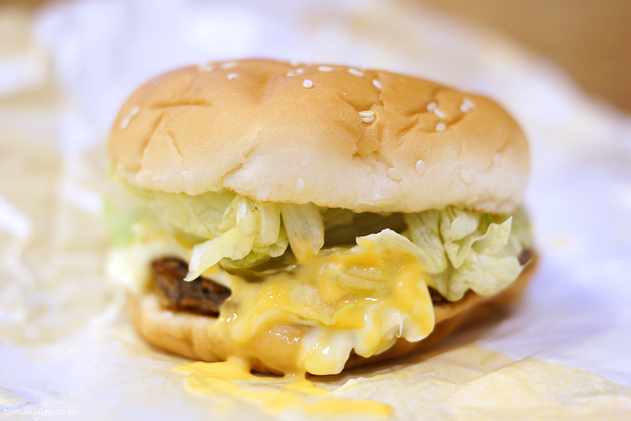 쏟아 내리는 양상추들의 모습 너무 훈훈합니다.. 아삭아삭한 양상추와 패티 위에서 녹아내리는 치즈들 냠냠.. 한 입만 먹어도 입안에 치즈향이 확~.. 치즈맛 진하고 맛있습니다..