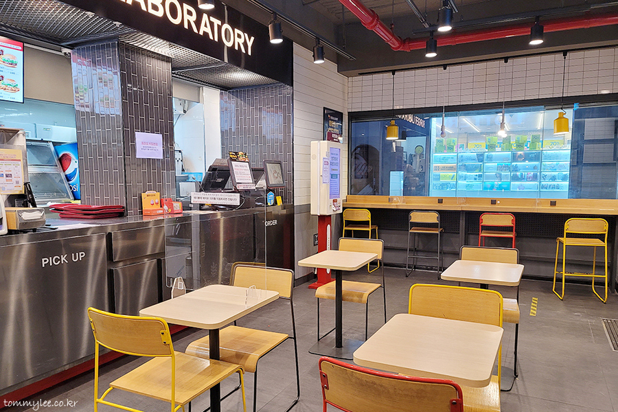 롯데리아 창천점은 포스트 코로나시대에 준비된 매장이며 혼밥에 최적화된 매장.. 덕분에 테이블이 좁아 거리확보가 어려워 사진찍기 힘들긴 했지만.. 어쨌거나 치즈버거는 롯데리아라는 거..