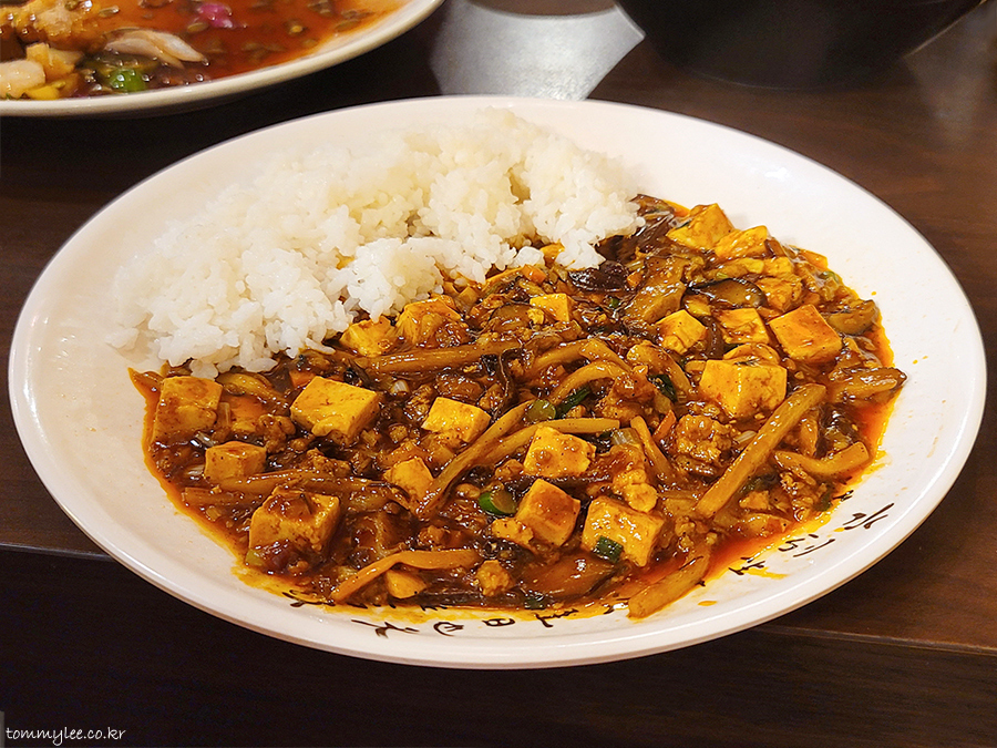 부드러운 두부와 매콤한 두반장.. 쓸데없이 안매워서 좋은.. 저는 밥류 중에선 이게 베스트메뉴..