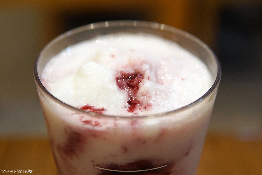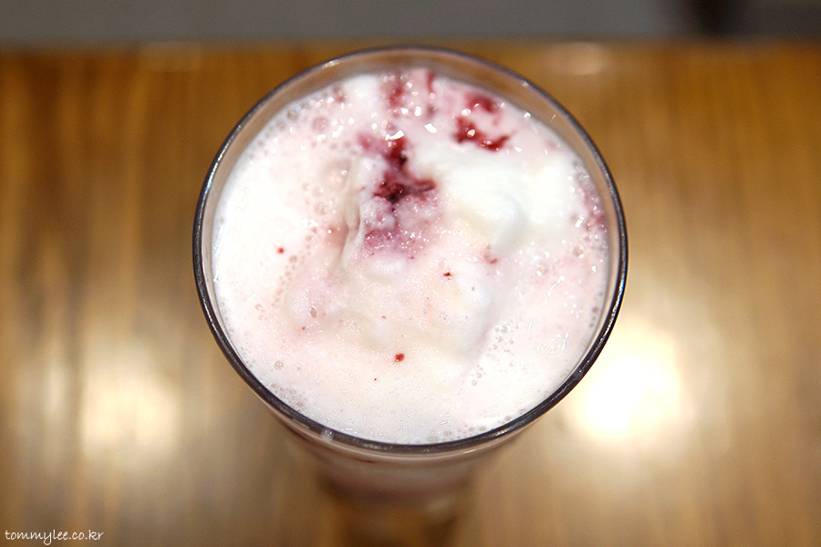 커피빈 코리아(!) 20주년 기념메뉴다 보니 커피빈에서는 한국적인 맛을 꼭 넣고 싶어 했던 듯합니다.. 그래서 메인인 블루베리 외에 복분자와 오디가 들어가 있는데요.. 블루베리 향이 너무 강하다 보니 둘이 묻히는 듯해서 아쉽네요.. 배분에 더 신경 썼어야 마땅했는데.. 아쉽습니다.. 마시다 보니 뽕나무에 주렁주렁 달린 오디를 따먹다가 입이 새까매졌던 추억도 떠오르고 하네요.. 오디 염색이 어찌나 안 씻기던지.. ㅡㅡ''..