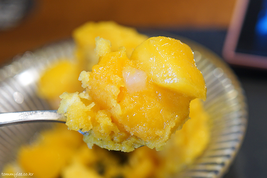 꽁꽁 얼어 있는 단단한 망고를 올리는 비양심 업체들이 많지만 파스쿠찌는 그래도 부드러운 망고라는 거..