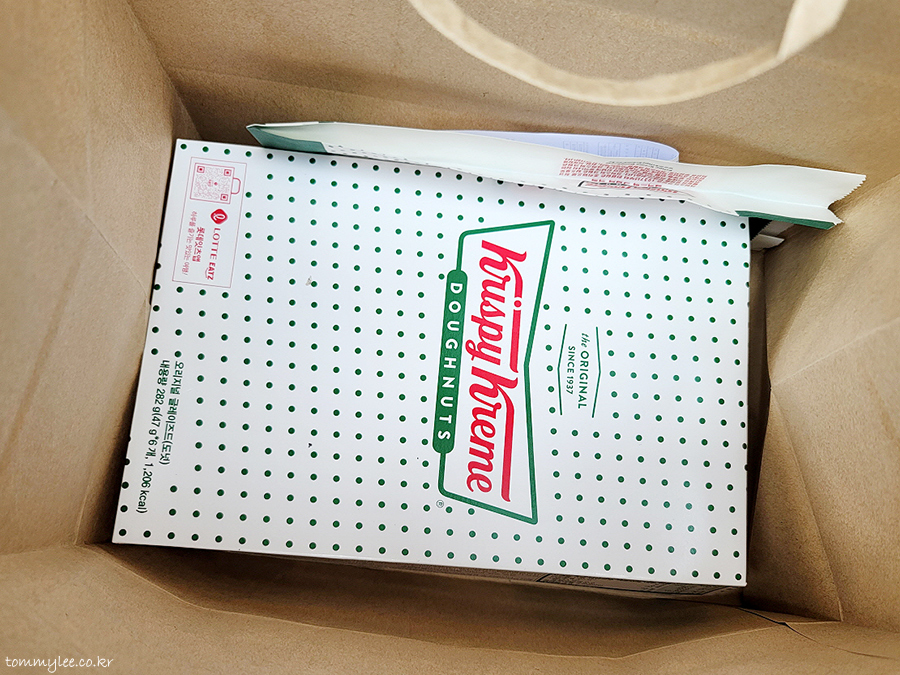 오리지널 글레이즈드 도넛이랑 소다크러쉬 콤보 구입.. 먹고 갈꺼라고 했는데 굳이 포장을 해주시고..