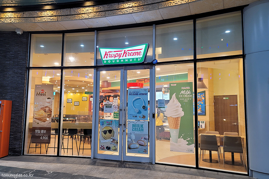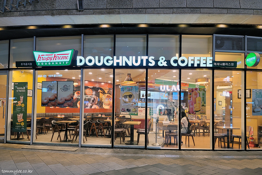 그래서 근처 크리스피크림으로.. 밖에서 봤는데 크리스피크림은 손님이 완전 없어서 거의 빨려 들어갔네요.. ㅋㅋㅋ.. KRISPY KREME DOUGHNUTS & COFFEE.. HAPJEONG MECENAT POLIS..