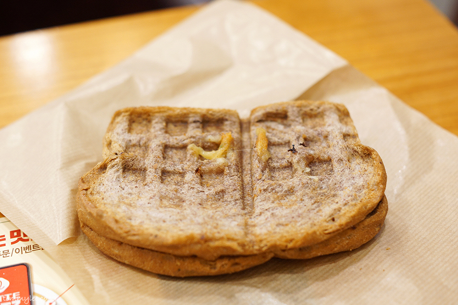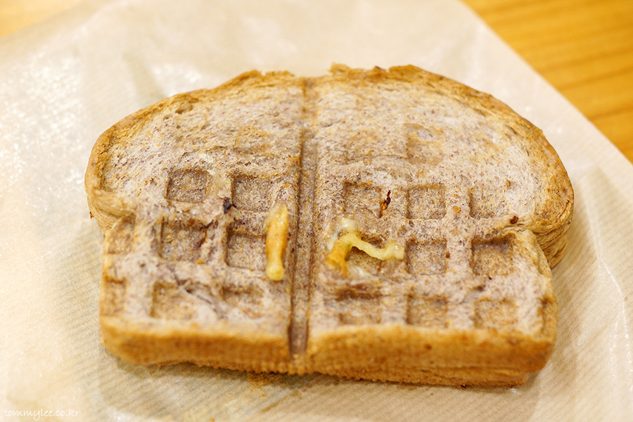 제대로 지져서 나온 따끈한 멜팅 치즈 샌드위치의 모습.. 커피와 함께 콤보로 주문 시 이 샌드위치가 3,900원→500원.. 그야말로 아름다운 가격..