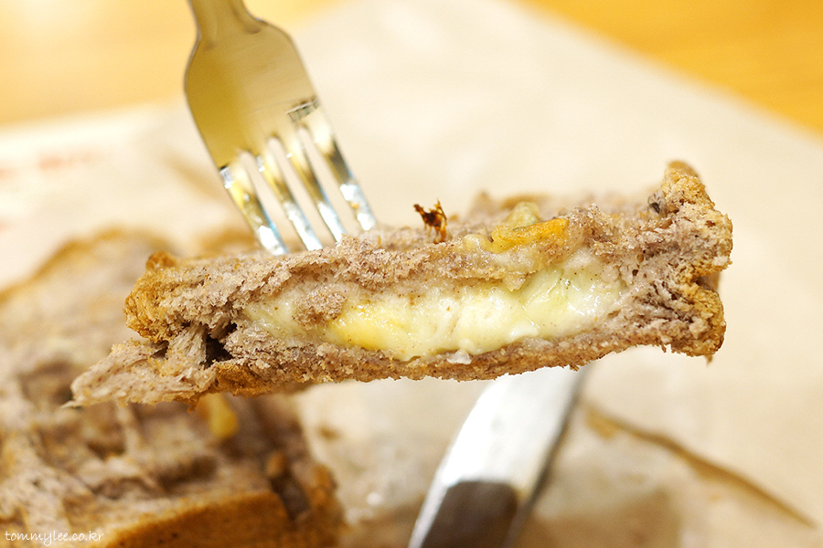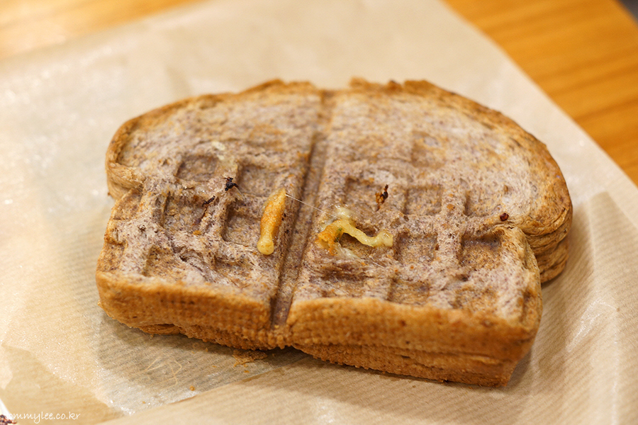샌드위치 안쪽은 이렇게 치즈가 가득.. 쓸데없이 야채 같은 거 하나도 안 들어가고 오로지 치즈만 들어 있어서 딱 제 취향..