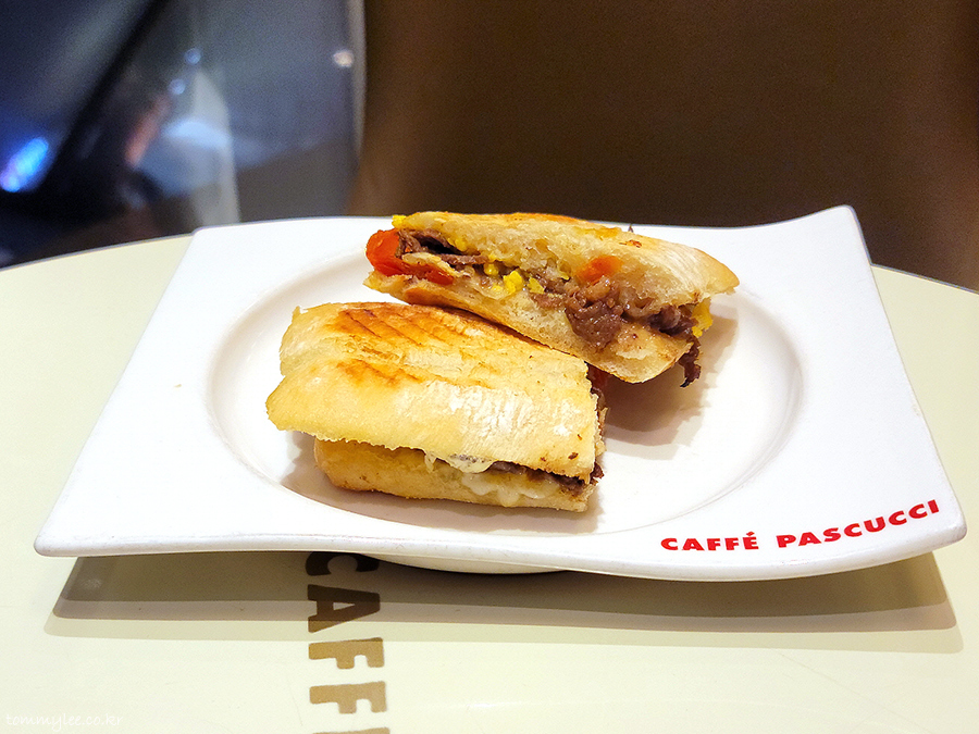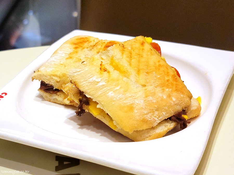 원래는 젤라또 크로플 먹을 예정(--)이었는데.. 해동한 생지가 없었던 건지 안된다고 하셔서.. 불고기 파니니를 오랜만에 주문하게 되었답니다.. 샌드위치 먹을 생각 전혀 없었는데.. ㅋㅋㅋ..