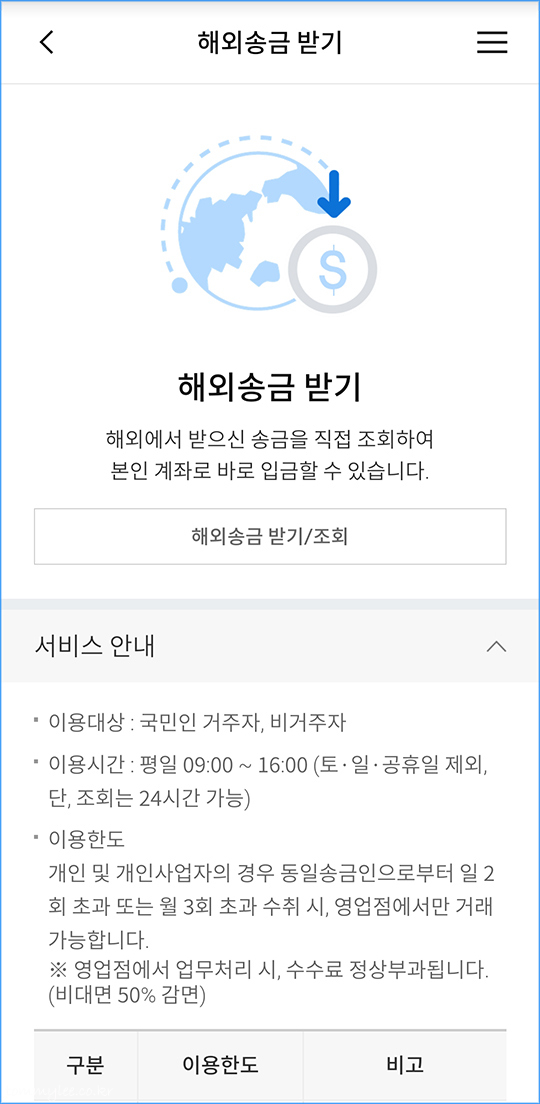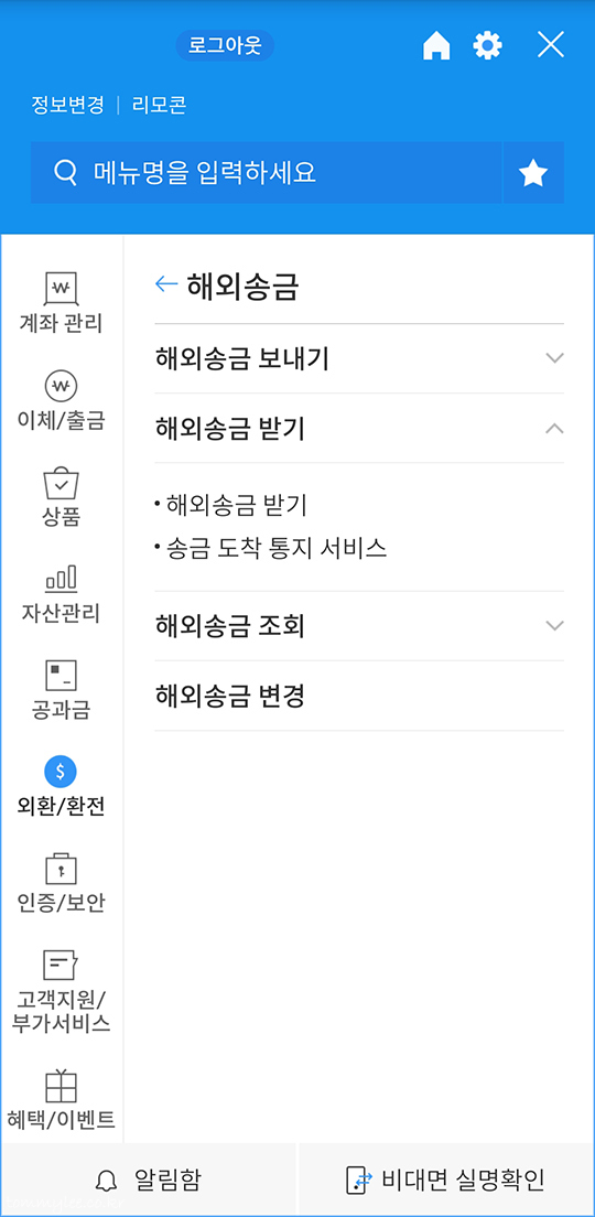 외환/환전 - 해외송금받기 - 송금도착서비스 이걸 해줘야 합니다..