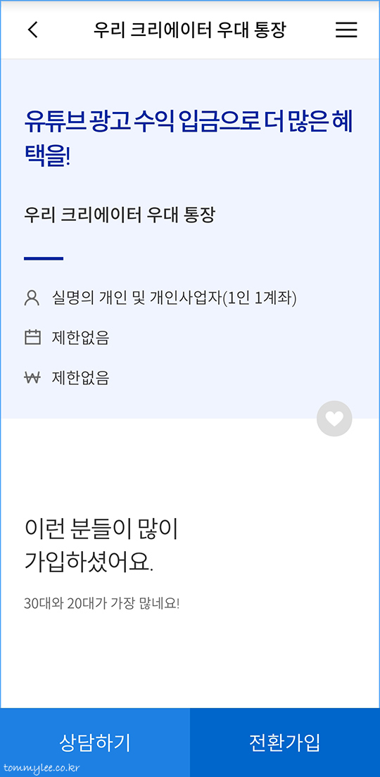 우리 크리에이터 우대 통장으로 상품이 전환되었습니다.. 끝~.. 참 쉽죠??..