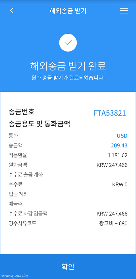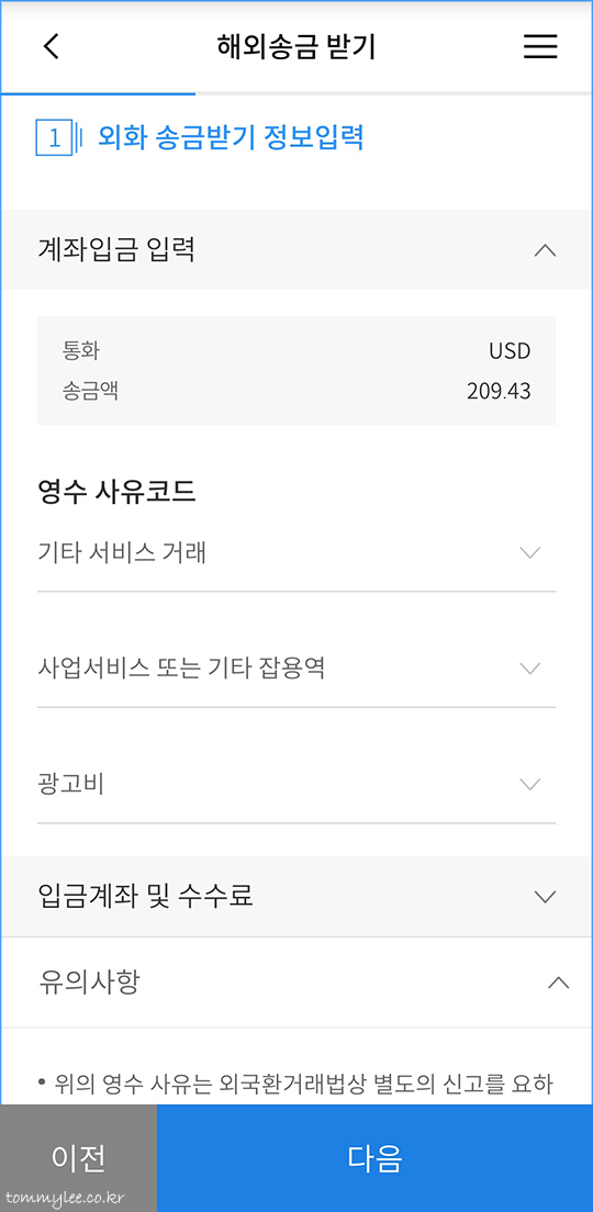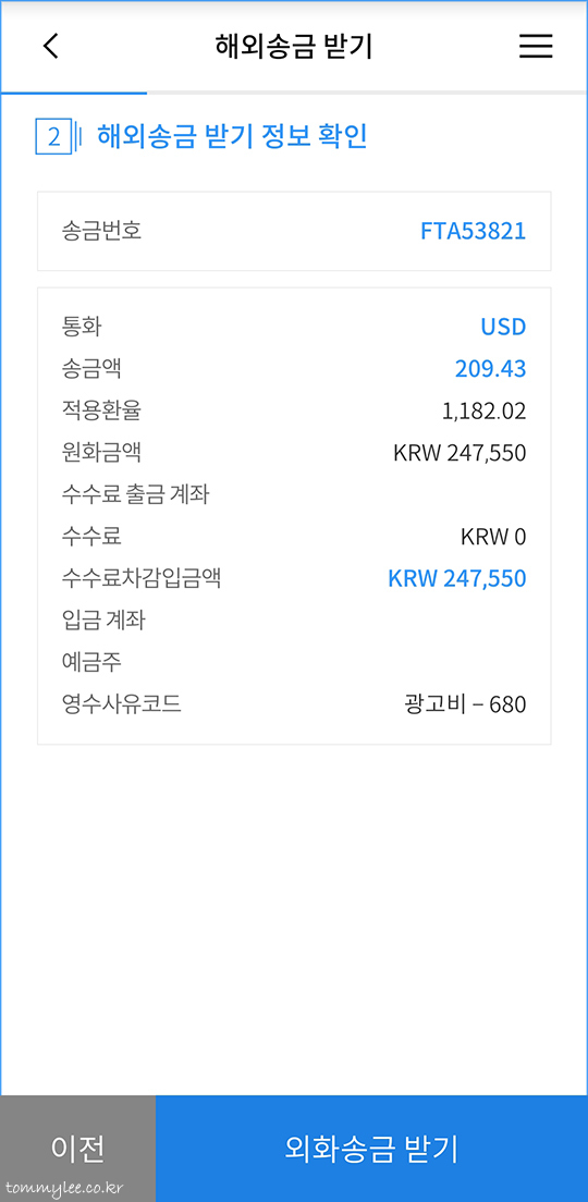 해외송금 받기 화면.. ㅋㅋㅋ..