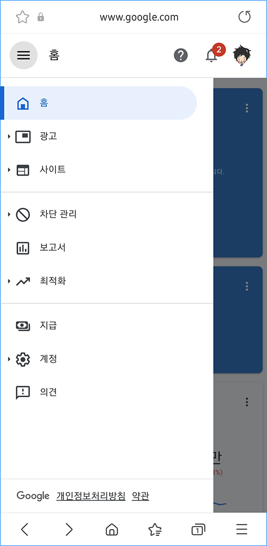 통장개설 끝~.. 이제 구글 애드센스로 이동해서 지급정보 수정을.. 애드센스 메뉴에서 지급을 클릭합니다..