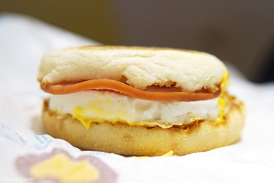 맥도날드 모닝메뉴 중에서 가장 저렴한 기본메뉴입니다.. 맥도날드에서는 캐나디안 베이컨이라고 부르는 햄과 계란, 치즈가 들어간 잉글리쉬 머핀 샌드위치랍니다..