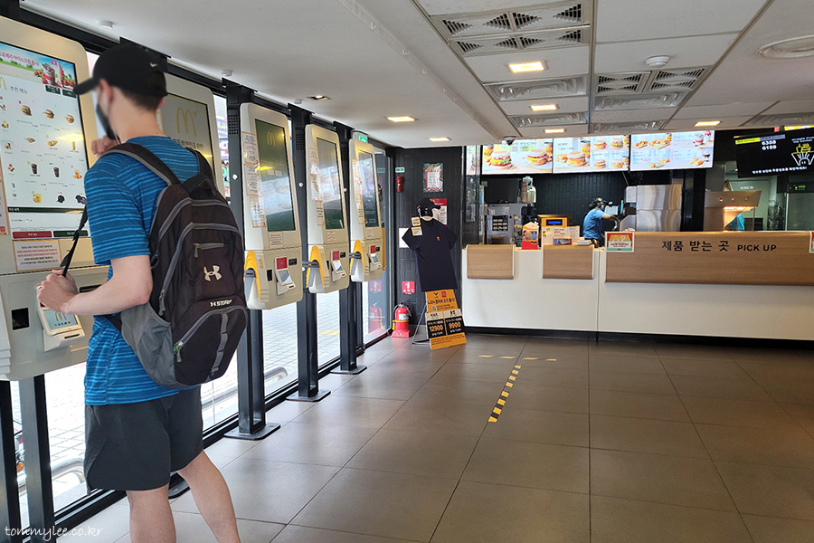 에그맥머핀 받아서 2층으로.. 오늘은 저 말고 2명 더 있네요.. 이 정도면 손님이 많은 편이라고 막.. ㅋㅋㅋ.. 진짜 버티고 있는 게 신기할 정도임.. ㅠ.ㅠ.. 여기 맥도날드는 진짜 강도 높은 거리두기를 해서 테이블 반이상 치운 건 기본이고, 남은 테이블도 테이블당 1명만 앉을 수 있게 해놨답니다.. 근처 롯데리아, 버거킹은 안 이런데 맥도널드는 마주 보고 못 먹게 막아놨어요.. 물론 옆에도 못 앉고.. ㅋㅋㅋ.. 여러 명 와도 다 흩어져서 따로따로 앉아서 먹어야 함.. 근데 여기서 각각 1명씩 앉히면 뭐하나 나가면 도로 합체될 텐데.. 이런 게 의미가 있나 싶어요.. 위에서 시켜서 하는 것이겠지만 이제는 이런 방식의 거리두기는 다시 생각해봐야 할 때가 아닌 가 싶음.. ㅡㅡ;;..