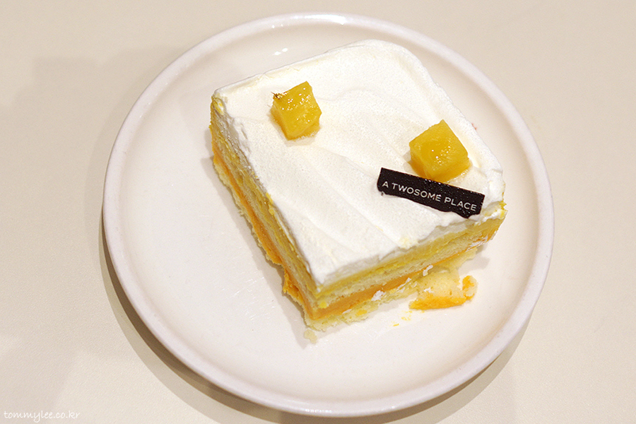 투썸플레이스에는 기존에 고구마케익이라는 메뉴가 없었는데.. 이번 가을에 처음으로 선보이는 겁니다.. 홀케이크는 일반적인 라운드형 생크림 케이크인데.. 조각케이크는 이렇게 파티팩 커팅한 떠먹는 케이크로만 나오네요..