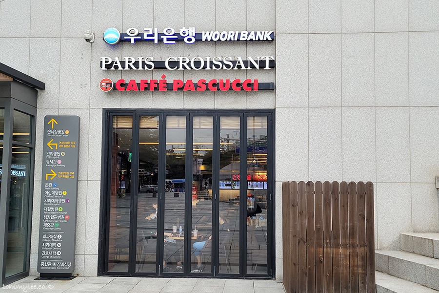 오늘도 평온한 파스쿠찌의 모습.. ㅋㅋㅋ.. 사실상 파스쿠찌 앞이 메인 게이트인데 세브란스는 셔틀버스가 역까지 운행해서 사람들이 이쪽으로 잘 안옵니다.. 그래서 스윙타임에 오면 이렇게 한가함..