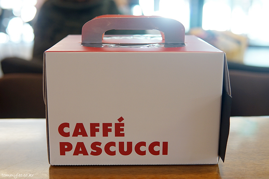 오늘의 주인공 파스쿠찌 홀케이크.. 파스쿠찌 케이크 박스는 요런 느낌..