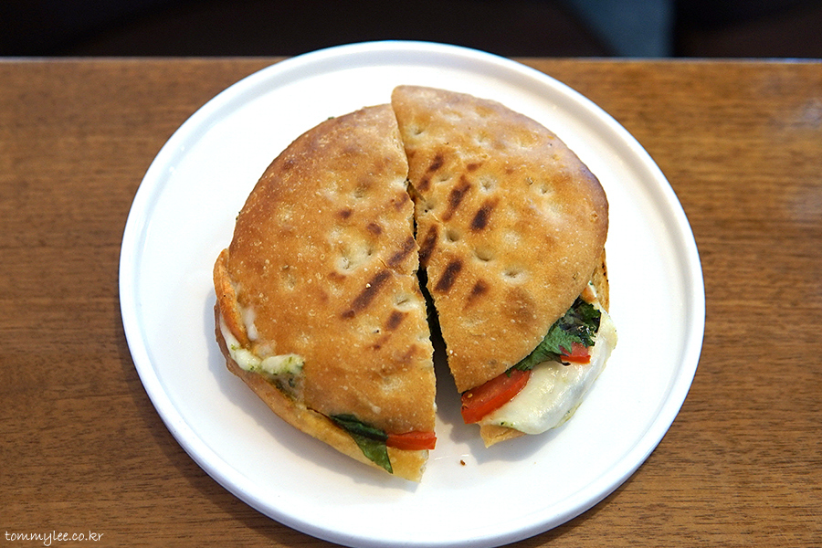 카프레제 포카치아 샌드위치 첫 주문이에요.. 이런 포카치아 샌드위치는 이렇게 큰 직영점에나 있지 제가 가는 작은 가맹점 매장에는 절대 없다는.. 늘 클래식, 불고기 파니니 2종뿐.. ㅋㅋㅋ..