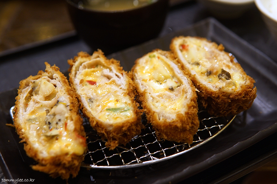 24겹 카사네카츠에 치즈와 전복이 들어가서 전복24랑한치즈카츠..