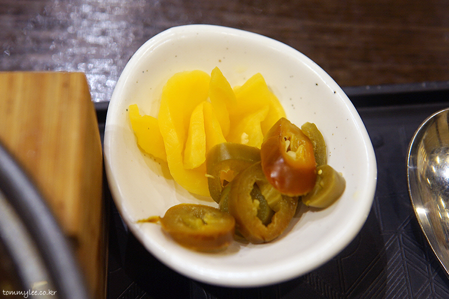 노란 단무지와 할라피뇨..