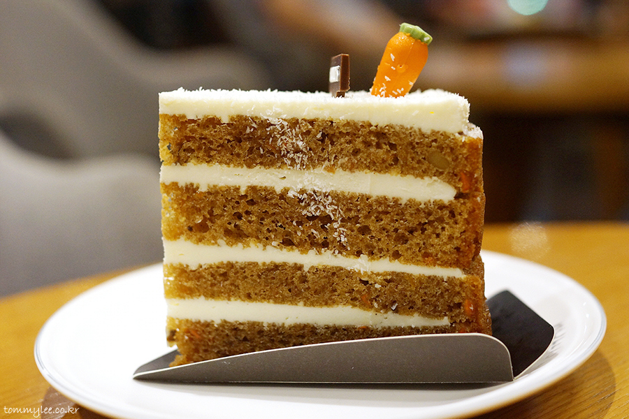 쿠폰은 다른 메뉴였는데 고구마 케이크가 다 팔리고 없다며.. 같은 가격의 다른 케이크를 고르라고 해서 오랜만에 당근케이크를 먹어 볼 수 있게 되었답니다..