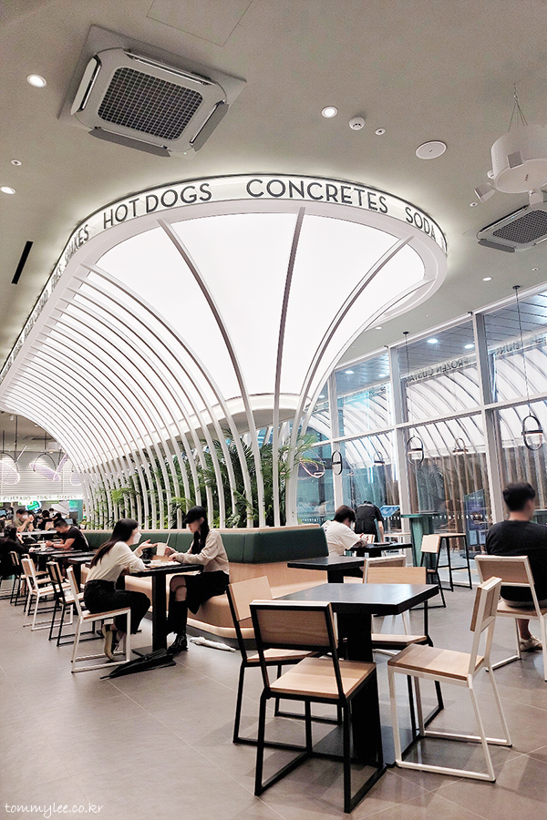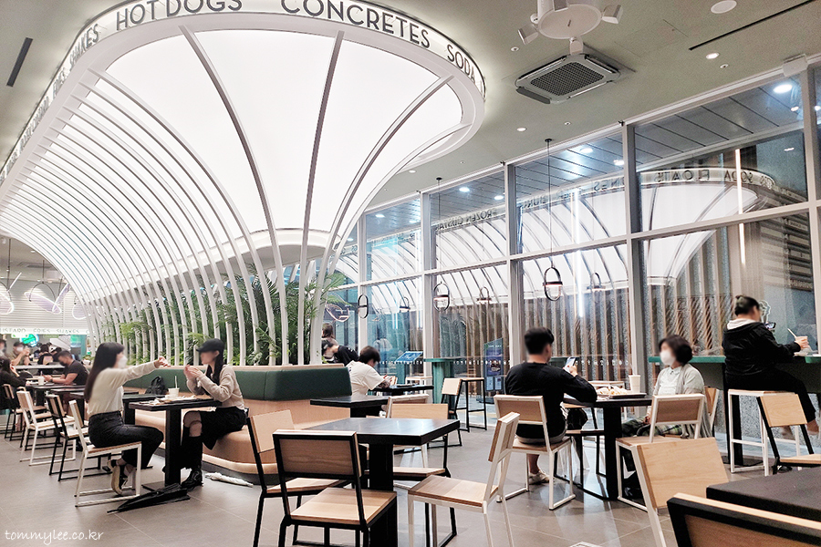 암튼 그건 그렇고.. 쉐이크쉑 홍대점 매장은 이렇게 길쭉하게 생겼습니다.. 이 빌딩 건물이 이렇게 길쭉이로 생겨서 그래요.. 큰길 쪽에서 보면 두 칸짜리 정도로 작아 보이는데 실제 매장 안에 들어와 보면 규모가 꽤 크고 테이블도 많답니다..