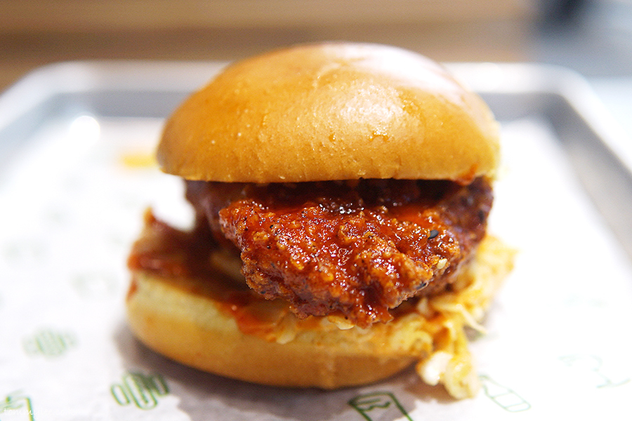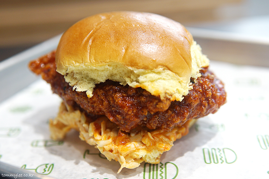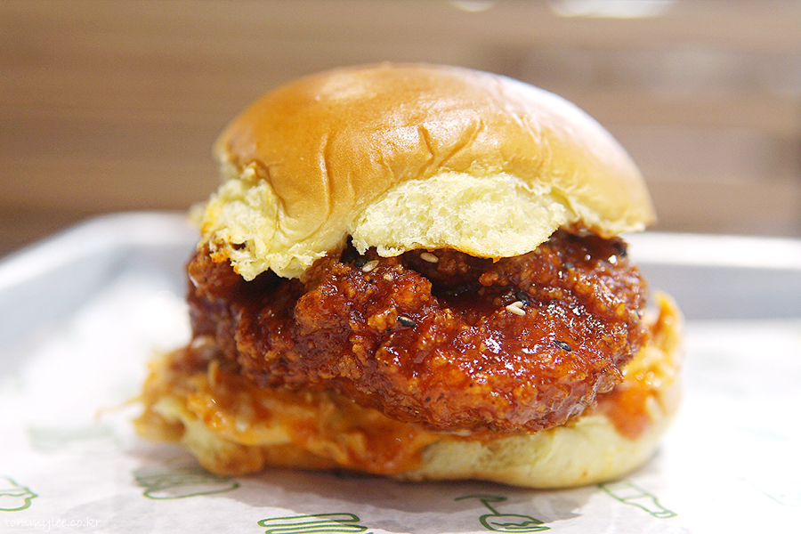 제대로 작정하고 한국의 맛을 표현한 쉐이크쉑 치킨 샌드위치는 두툼이 닭가슴살을 사용하고 있어서 일단 맘에 드네요.. 길고 두꺼운 패티 굿굿~.. 그리고 보통의 치킨버거보다 더 크리스피 한 스타일의 튀김옷인 듯..