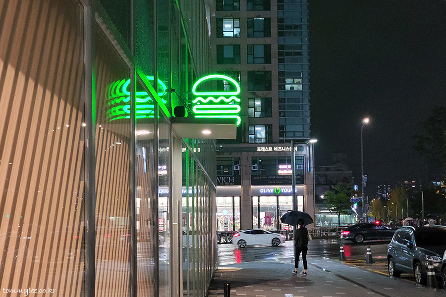 어쨌거나 고추장 쉑 먹으러 쉐이크쉑 홍대점을 찾았답니다.. 가을비가 매섭게 퍼붓고 있었지만 고추장쉑과 고추장후라이를 향한 저의 열정은 막을 수가 없었다는.. 아쉽게도 건물 바깥쪽 공원 방향 출입구는 방역대책(?)으로 여전히 닫은 상태였네요.. 출입구 폐쇄는 사람들을 밀집시키는 효과가 있다는 걸 다들 왜 모르는 건지 이해불가..