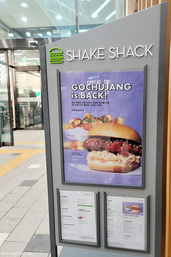 작년 쉐이크쉑에서 한국 전통의 맛을 살린 쉐이크쉑의 신메뉴라며 고추장 시리즈를 내놨었는데.. 기간한정 메뉴라서 잠깐 팔고 말아서 놓쳤었는데.. 1년 만에 재출시했다고 해서 쉐이크쉑에 다녀오게 되었답니다.. 이번엔 먹어야겠단 생각에 어쩔 수 없이 쉑쉑행..