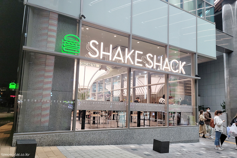 SHAKE SHACK.. HONGDAE.. 쉐이크쉑 홍대점.. 지난달 문을 열은 홍대 셰이크 쉑의 늠름한 모습.. 홍대입구역에 있긴 한데 2호선 쪽이 아닌 경의선 공항철도 쪽 홍대역이고 AK&홍대 옆 LC타워 건물 1층에 자리하고 있답니다..