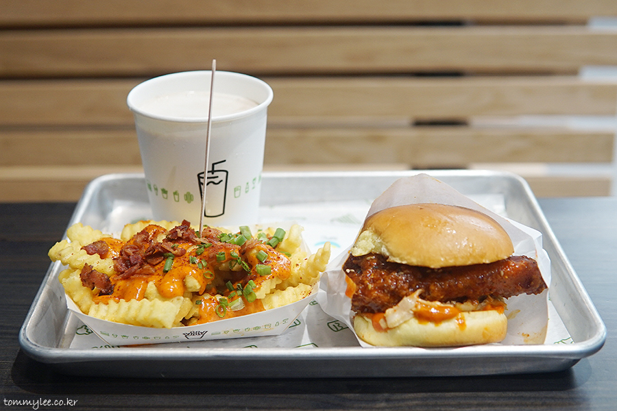 한국을 사랑하는 쉐이크쉑에서 내놓은 진짜 한국스타일 메뉴인만큼 먹어서 응원해줘야 한다는 생각도 있는데.. 아무래도 저에겐 너무나도 익숙한 맛이라서 처음 먹지만 처음 먹는 느낌이 전혀 없었음.. 그래도 맛이 없진 않아요.. ㅡㅡ;;.. 가장 아쉬운 건 아지모노토의 양.. 적당히 쓰셨더라면 제가 이 단어를 거론할 필요가 없었을 텐데 욕심이었음..
