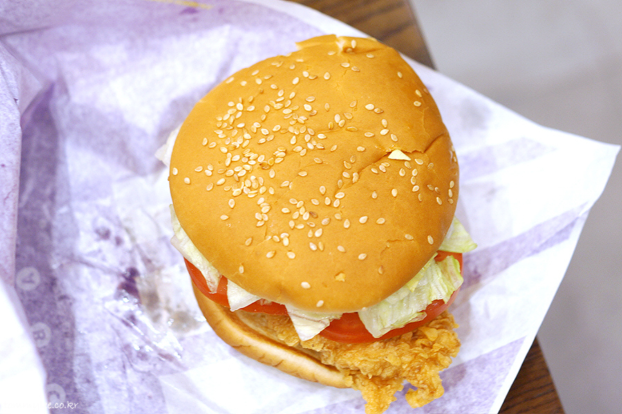 위에서 바라보면 이런 느낌.. 치킨패티가 삐져 나온 느낌 너무 훈훈하네요..