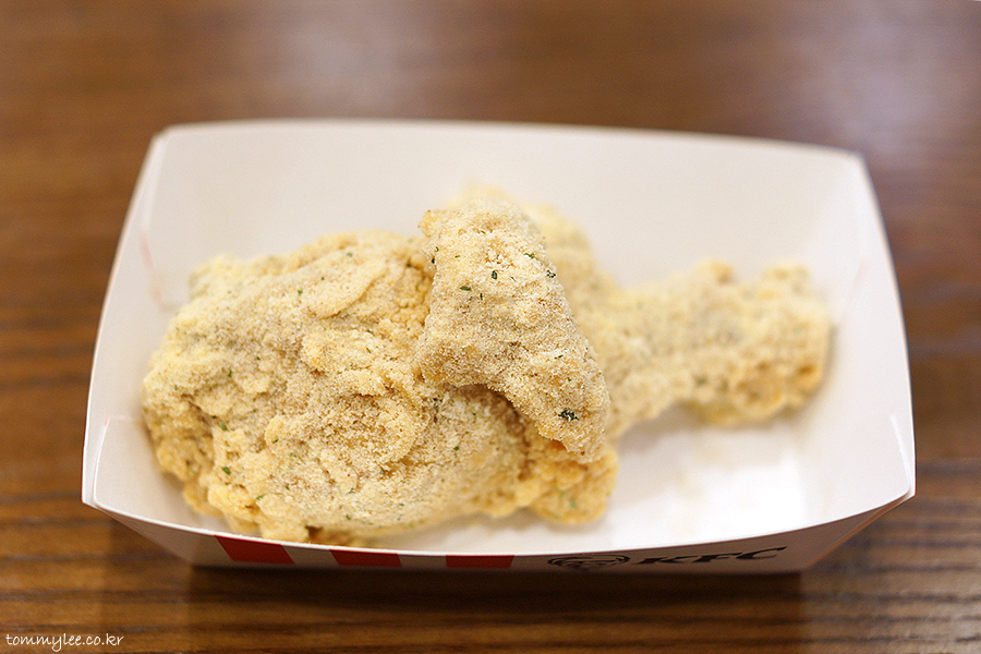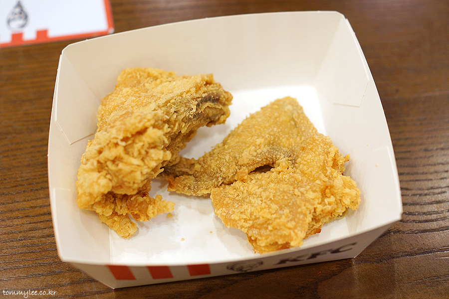 KFC 조각치킨은 원하는 부위는 선택할 수가 없기 때문에 진짜 복불복입니다.. 싸이, 립, 킬, 드럼스틱, 윙 중에서 뭐가 나오려나 알 수가 없는.. 저는 윙이나 킬을 좋아라 한답니다..