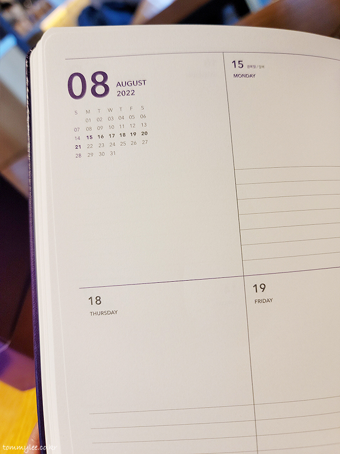 스케줄러 안쪽은 요런 느낌입니다.. 플래너보다는 스케쥴러가 더 맘에 드는 것 같기도..