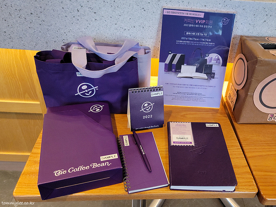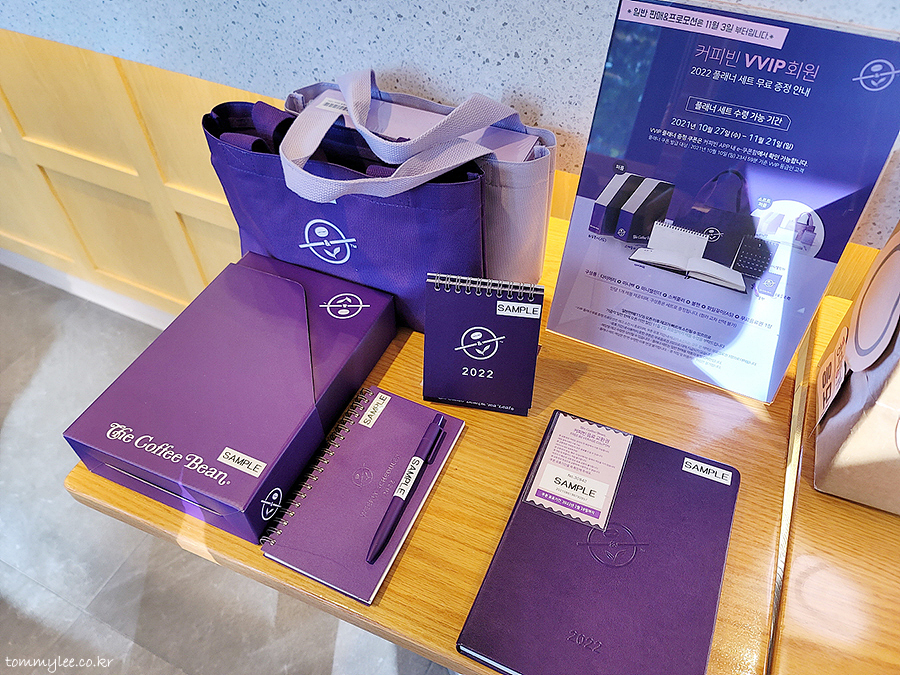 암튼 2022 VVIP 플래너 세트 교환권을 살랑살랑 흔들면서 커피빈으로.. 샘플이 이렇게 나와 있네요.. 이미지로 본 것 보다는 작은 느낌..