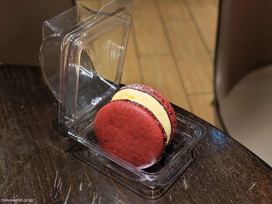 지난번 할로윈 뚱카롱은 꼬끄가 다 굳어서 맛이 없었는데.. 레드벨벳 뚱카롱은 정상적인 상태였네요.. 마카롱이 당연히 이렇게 쫀득해야 하는 건데 이 당연한 걸 못지키는 곳들이 많단 말이죠.. 어쨌거나 할리스가 뚱카롱으로 갈아타고 마카롱이 맛있어졌다는 사실.. 할리스 가시면 뚱카롱에 한번 도전해보시라는..