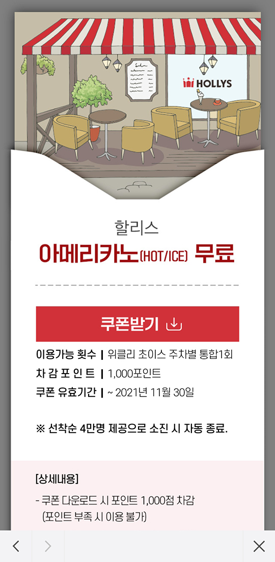 선착순 쿠폰이라 파리바게뜨 쿠폰이 가장 먼저 소진되었고.. 그 다음이 할리스.. 할리스도 쿠폰이 다 소진되긴 하는데 4만명이라 조금 여유는 있더라고요.. 어쨌거나 아메리카노 쿠폰 사용을 위해 방문한 할리스 합정역점..