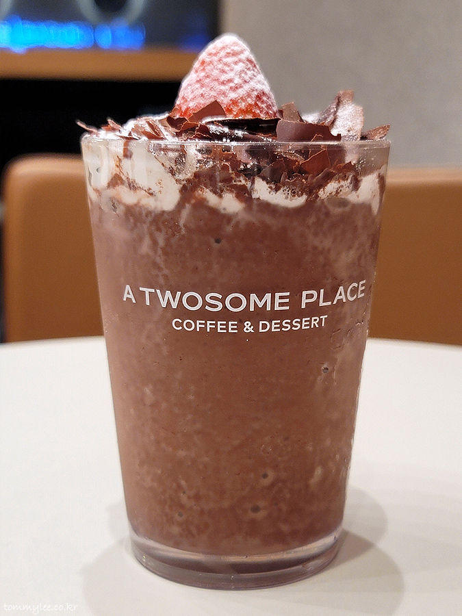 주문 대기 같은 거 하나도 없었는데.. 뭐가 그리 급했던지 프라페를 갈다가 말았음.. 덩어리 얼음이 엄청 많았던.. 기본이 안된 매장이네요.. 저번에도 이러더니 똑같네.. ㅡㅡ;;.. 암튼 스트로베리 + 초콜릿이 아니라 딸기는 장식으로 올려진 하나뿐입니다.. 사실은 그냥 초콜릿 프라페.. ㅋㅋㅋ..