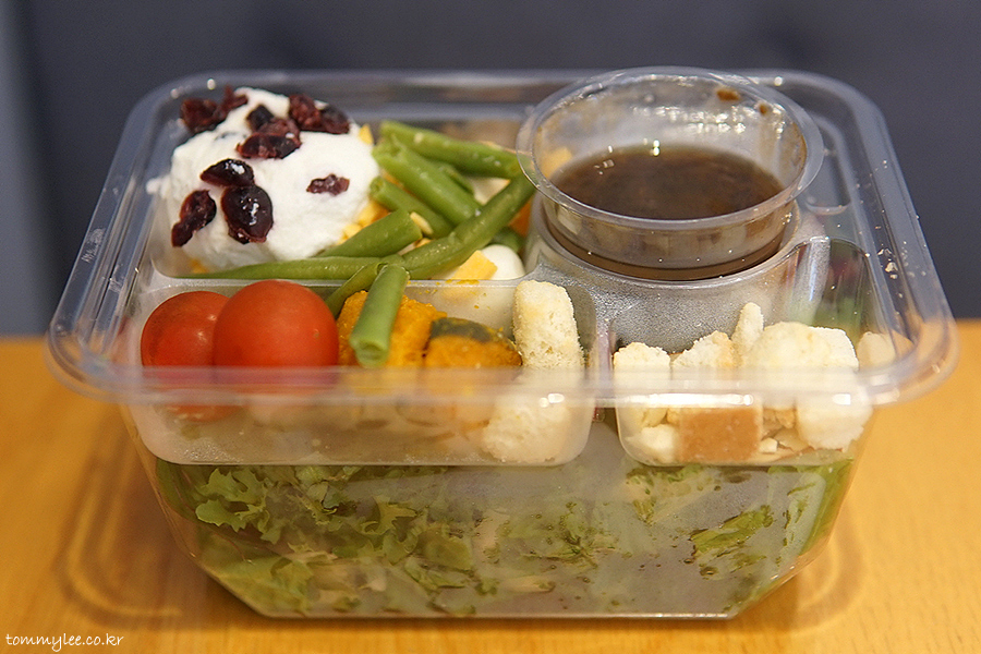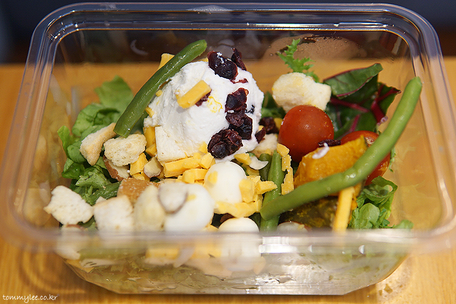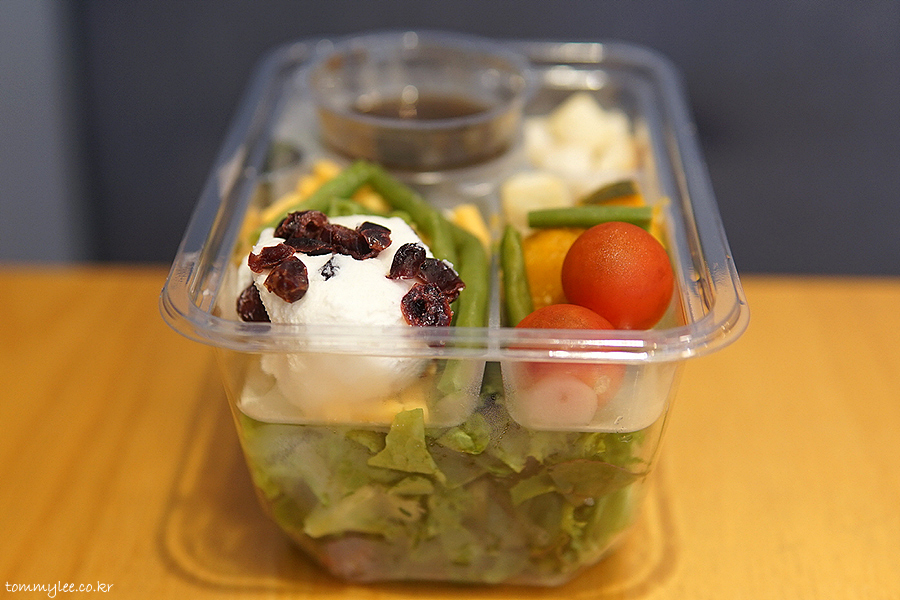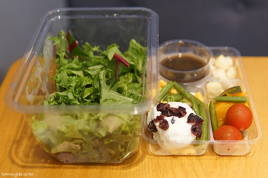 보시다시피 샐러드 믹스와 토핑 2단으로 되어 있는 샐러드랍니다..